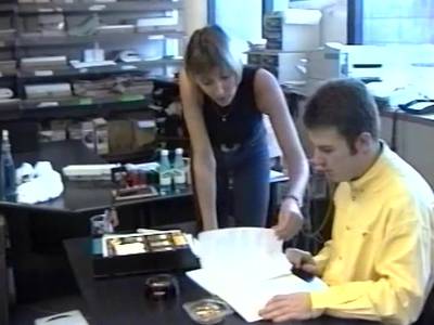 Heißer Sex Akt mit perverser Büroangestellten auf dem Bürotisch